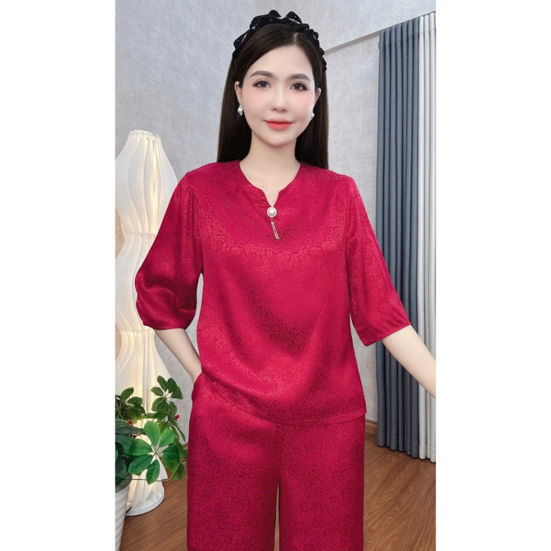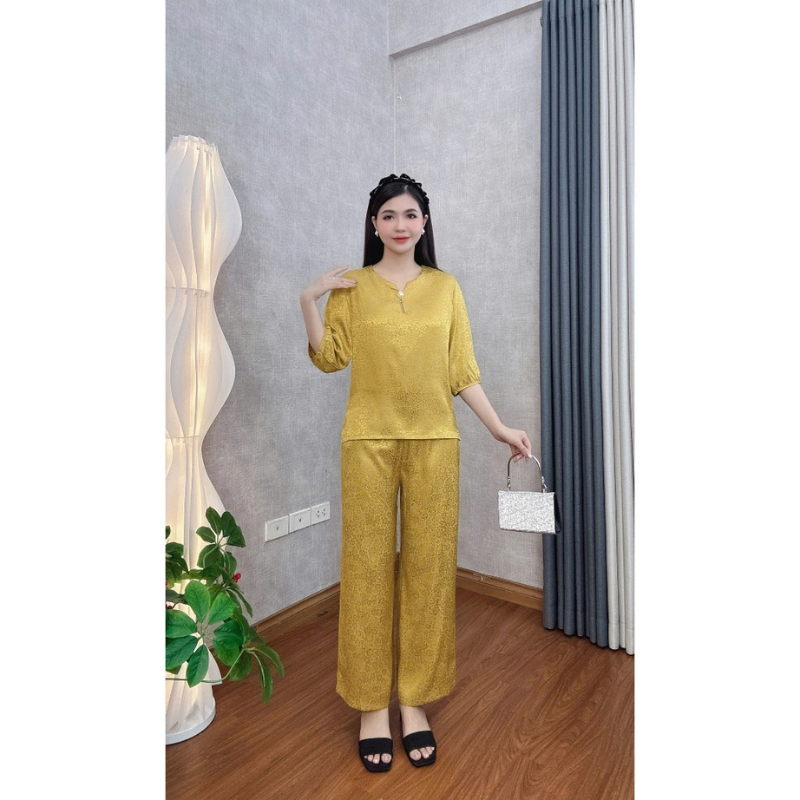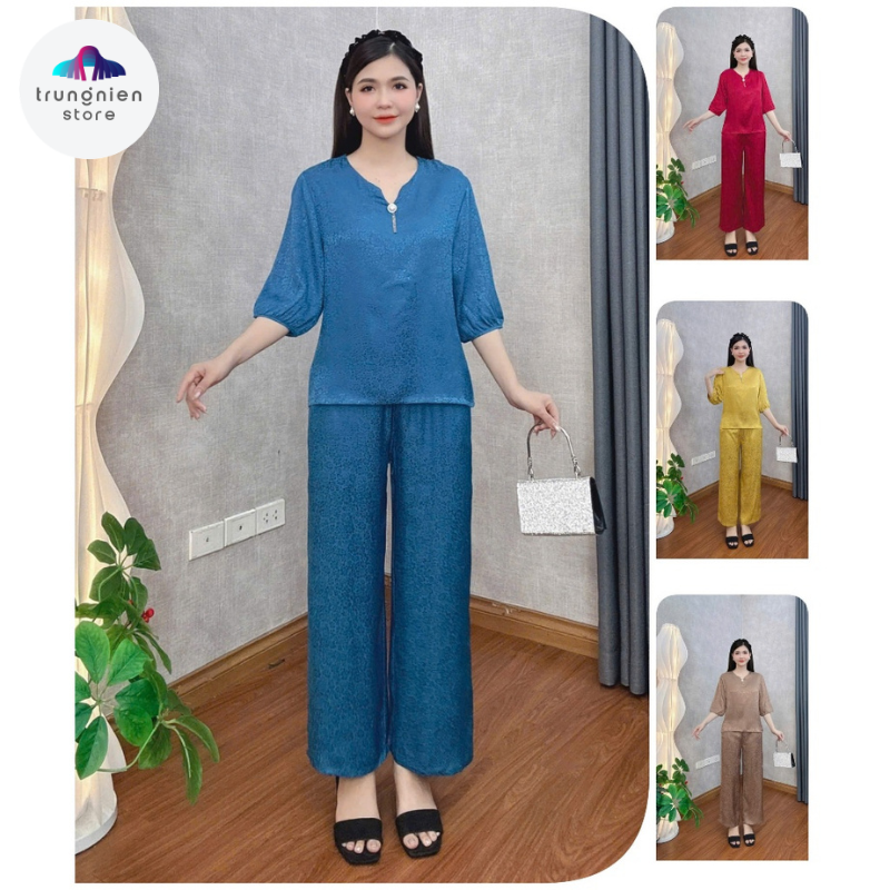 Bộ Đồ Lụa Trung Niên Mặc Nhà Cho Mẹ Trung Niên Store Chất Liệu Mềm Mại Hoạ Tiết Hoa Xanh Mát Mẻ Thoáng Khí B09