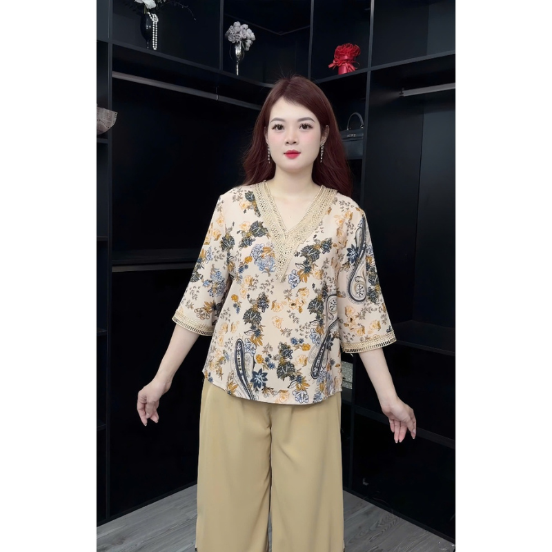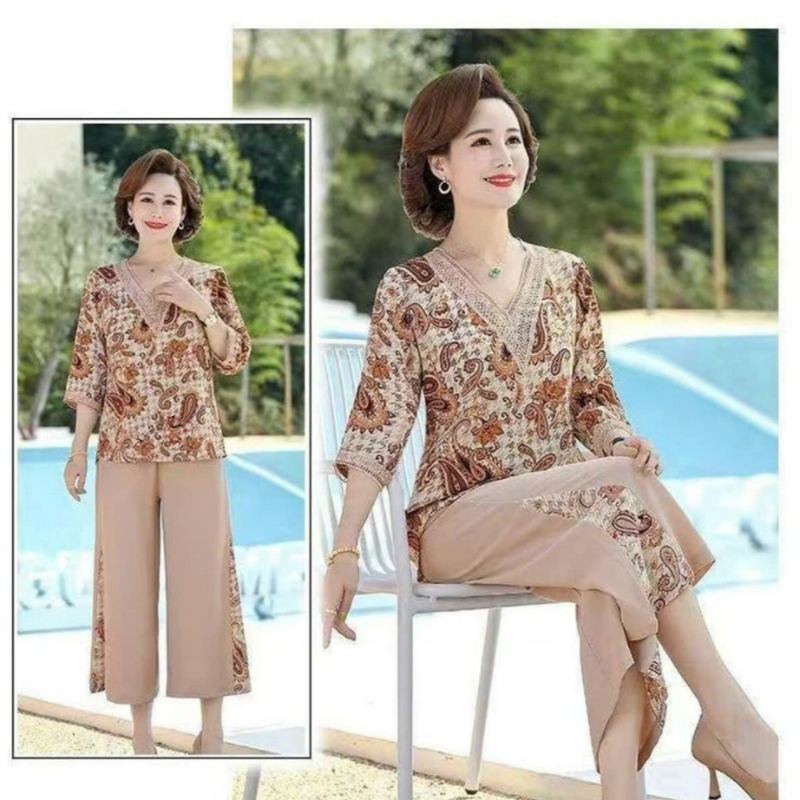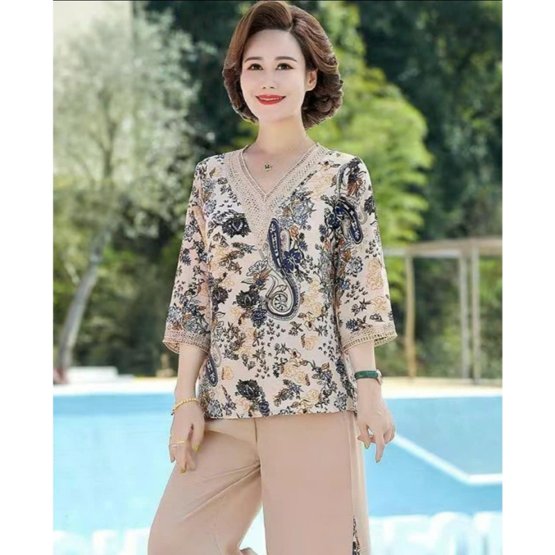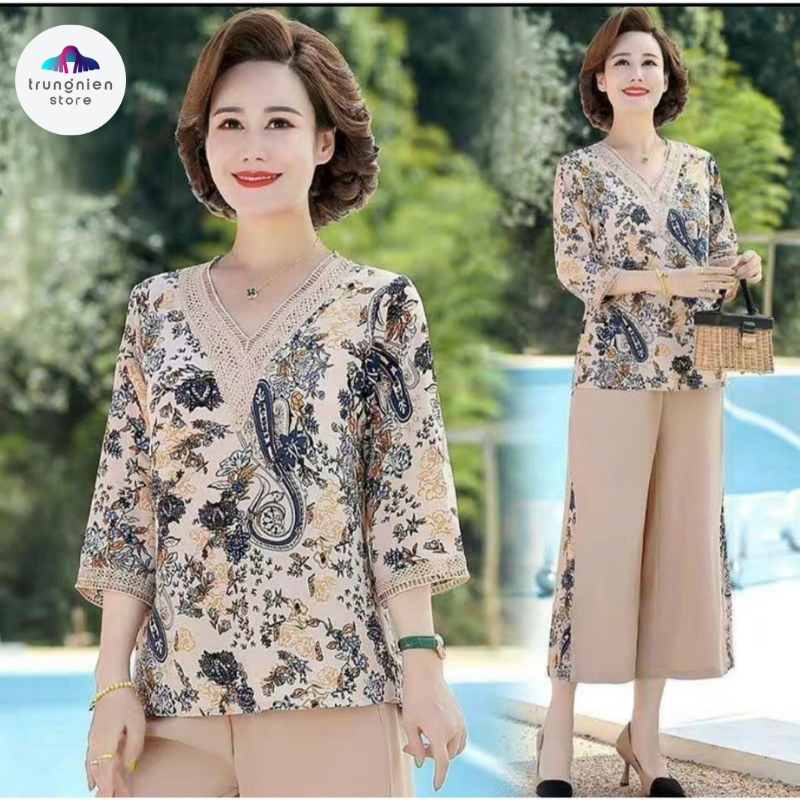Bộ Đồ Lụa Trung Niên Mặc Nhà Cho Mẹ Trung Niên Store Chất Liệu Mềm Mại Hoạ Tiết Sang Trọng Quần Dài B56