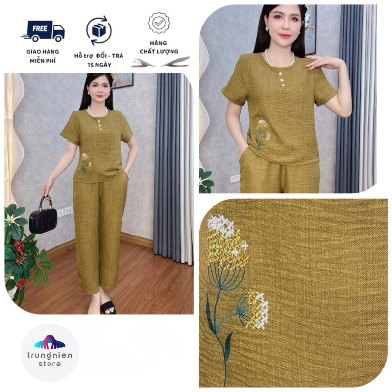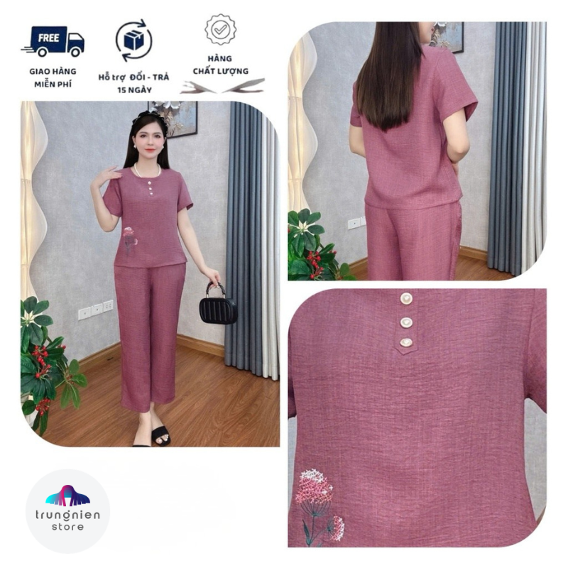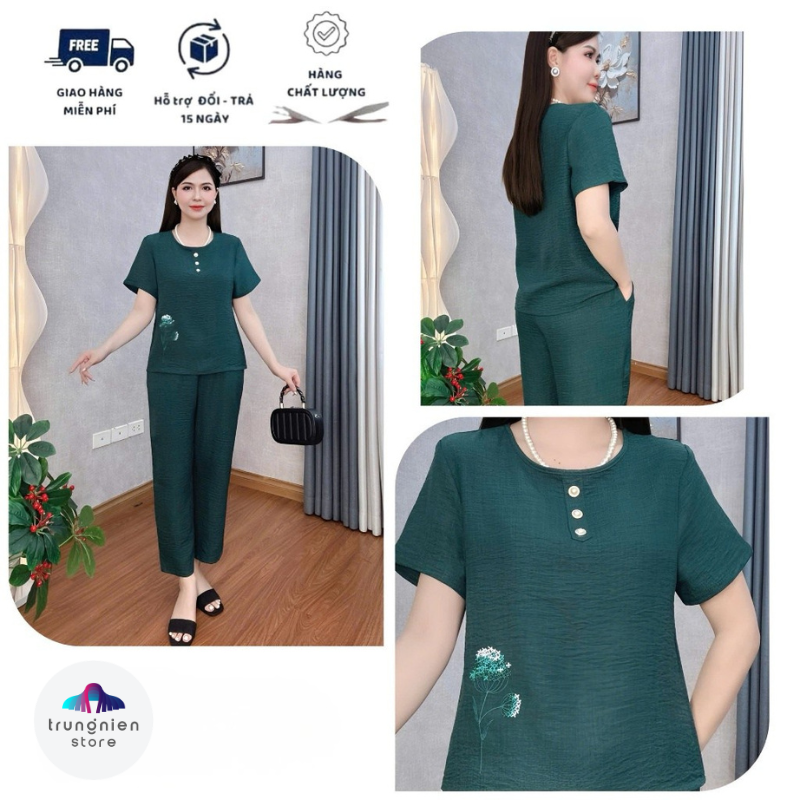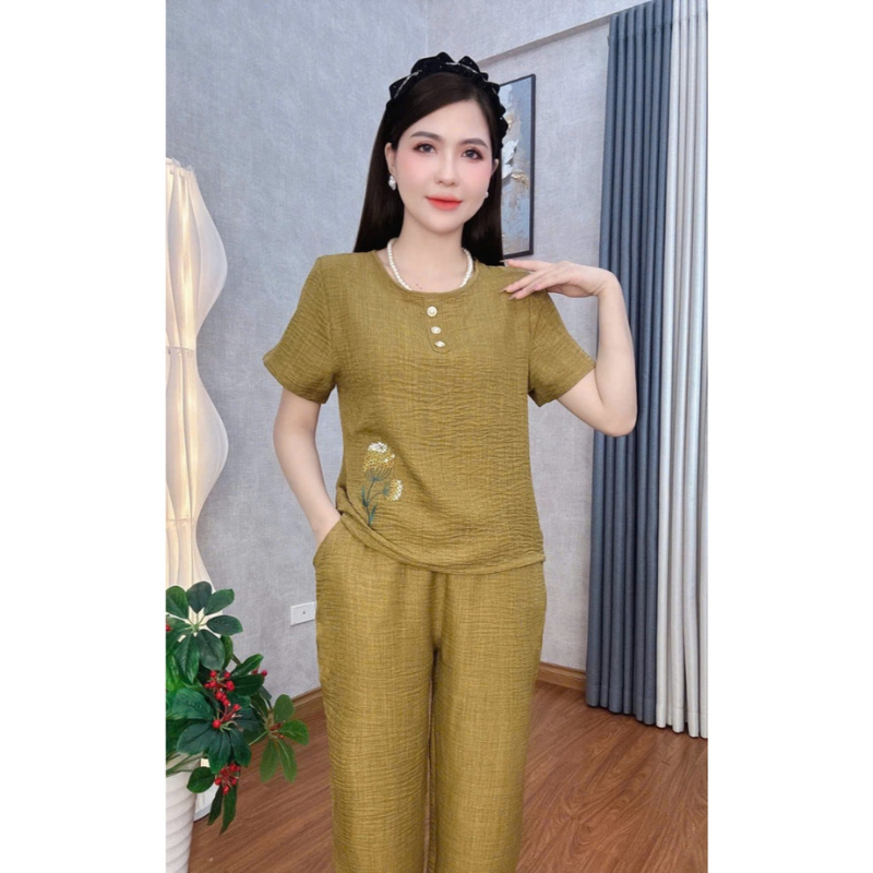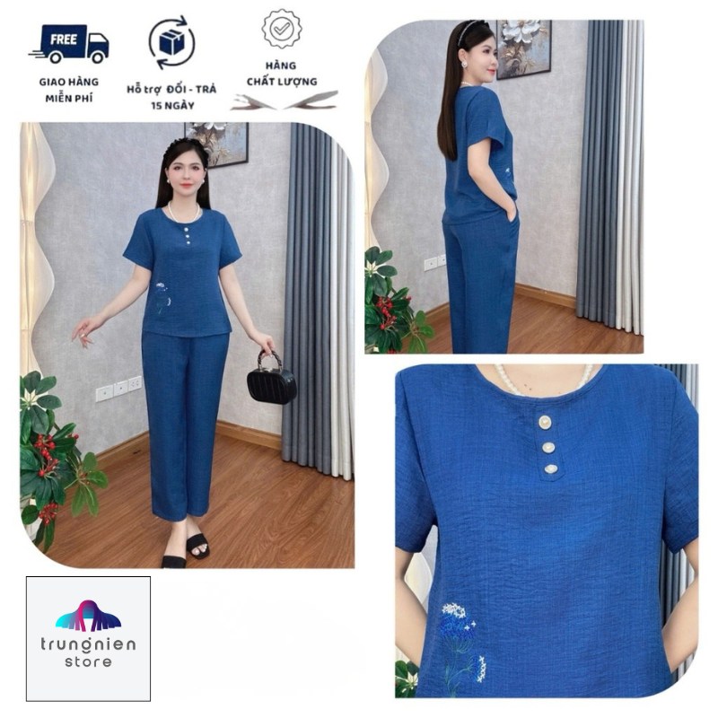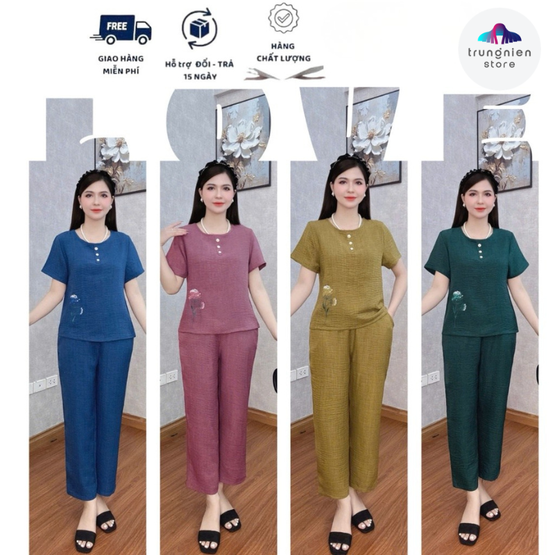 Bộ Đồ Lụa Trung Niên Mặc Nhà Cho Mẹ Trung Niên Store Chất Liệu Mềm Mại Hoạ Tiết Thêu Nổi Co Giãn Nhẹ B22