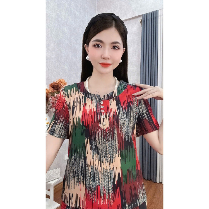 Bộ Đồ Lụa Trung Niên Mặc Nhà Cho Mẹ Trung Niên Store Hoạ Tiết Sọc Cộc Tay