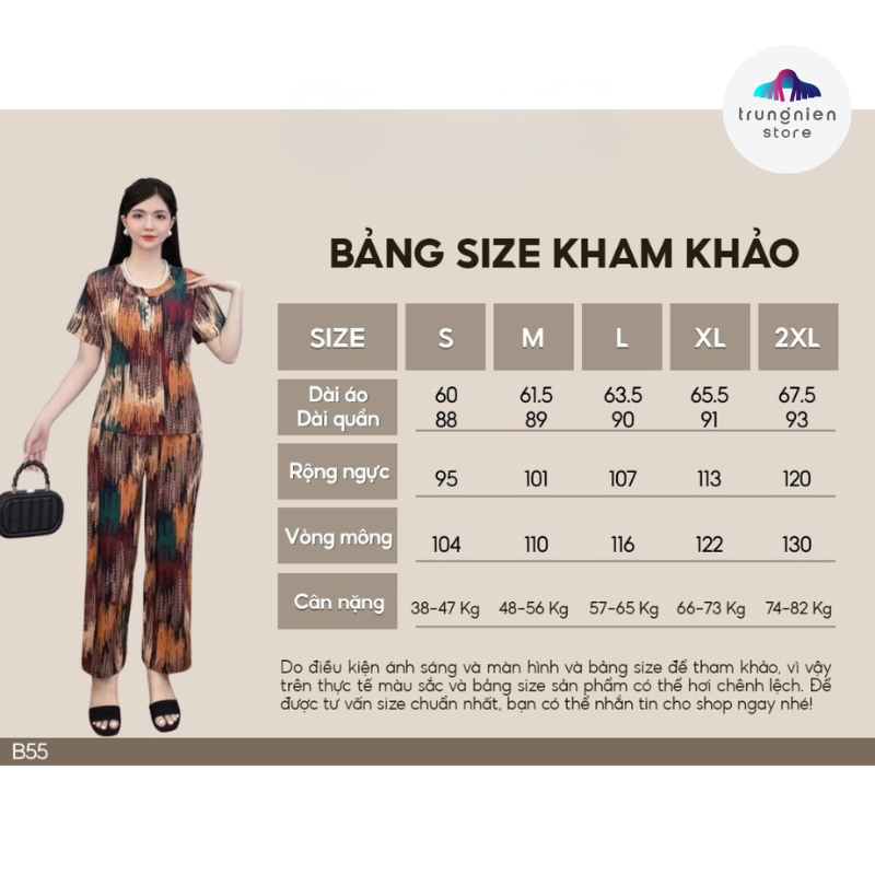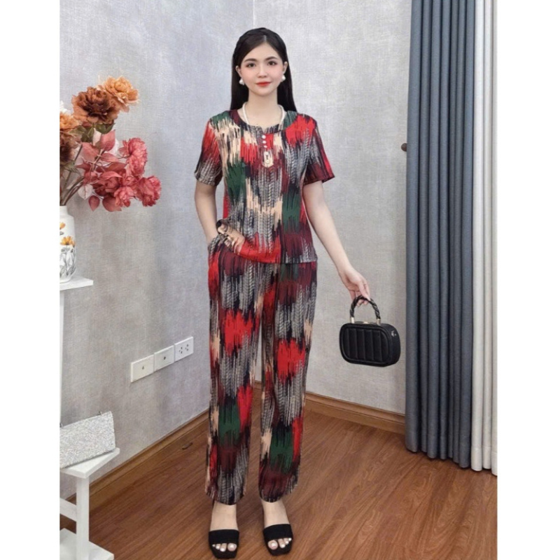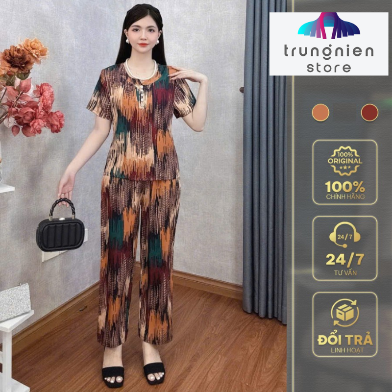 Bộ Đồ Lụa Trung Niên Mặc Nhà Cho Mẹ Trung Niên Store Hoạ Tiết Sọc Cộc Tay Quần Dài Chất Liệu Mềm Mại Co Giãn Tốt B55