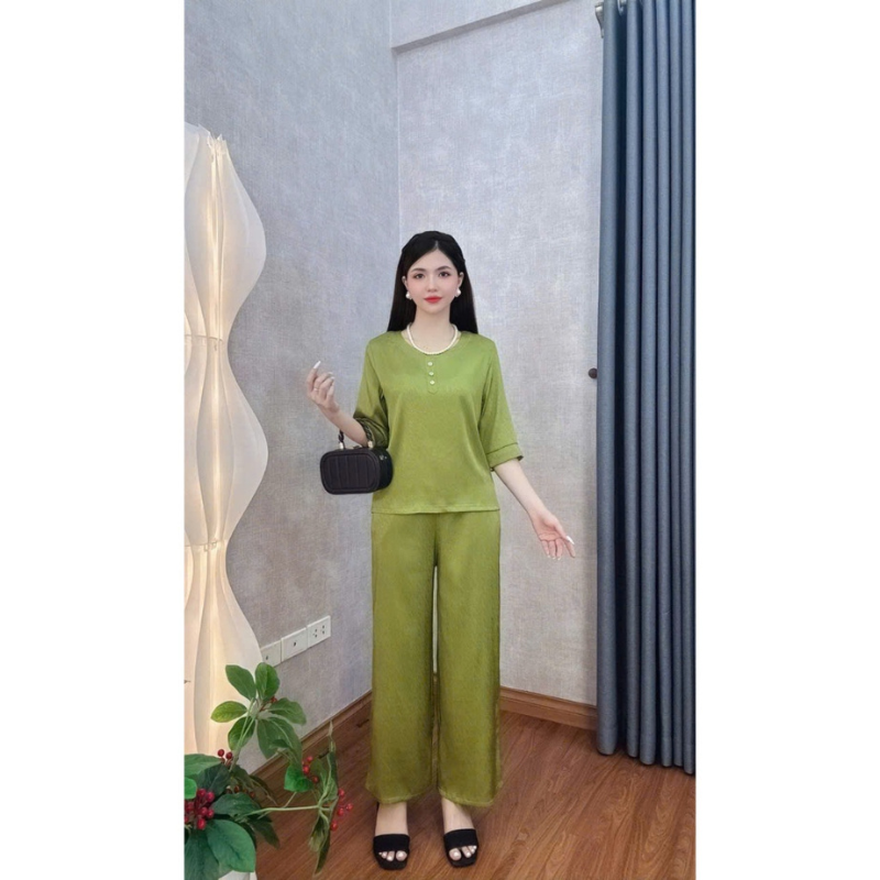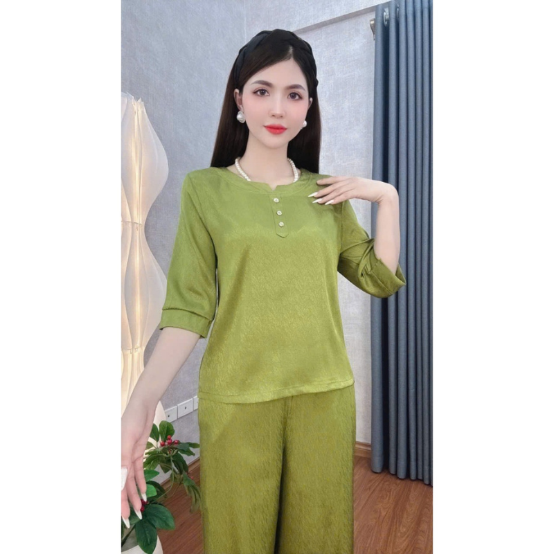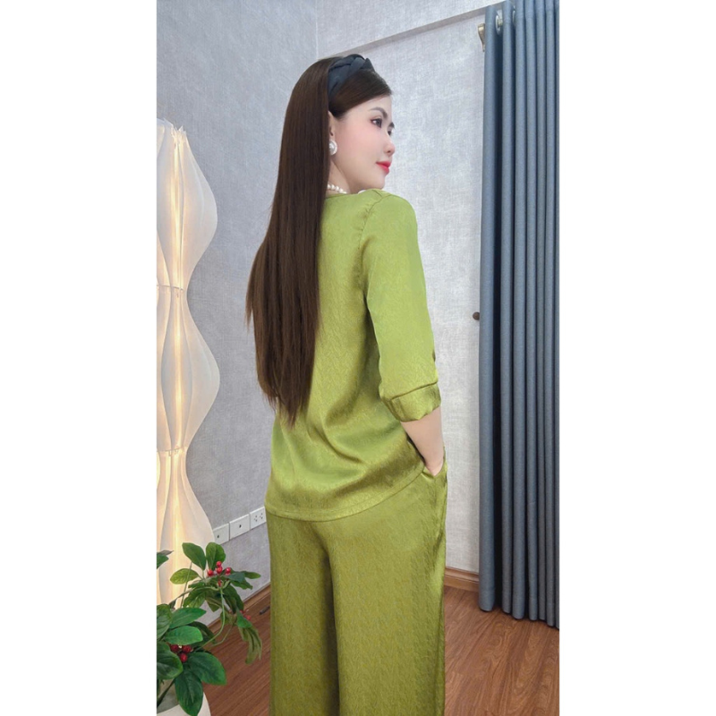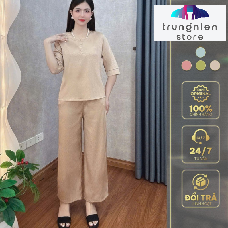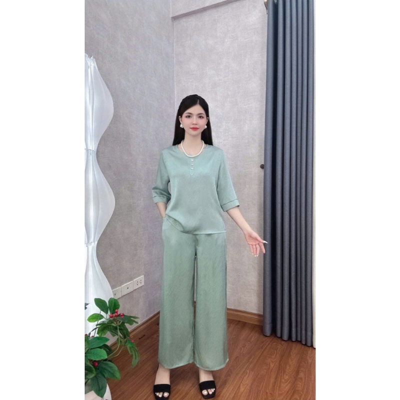 Bộ Đồ Lụa Trung Niên Mặc Nhà Cho Mẹ Trung Niên Store Mềm Mại, Chất Liệu Cao Cấp Co Giãn Nhẹ Tay Lỡ Quần Dài B44