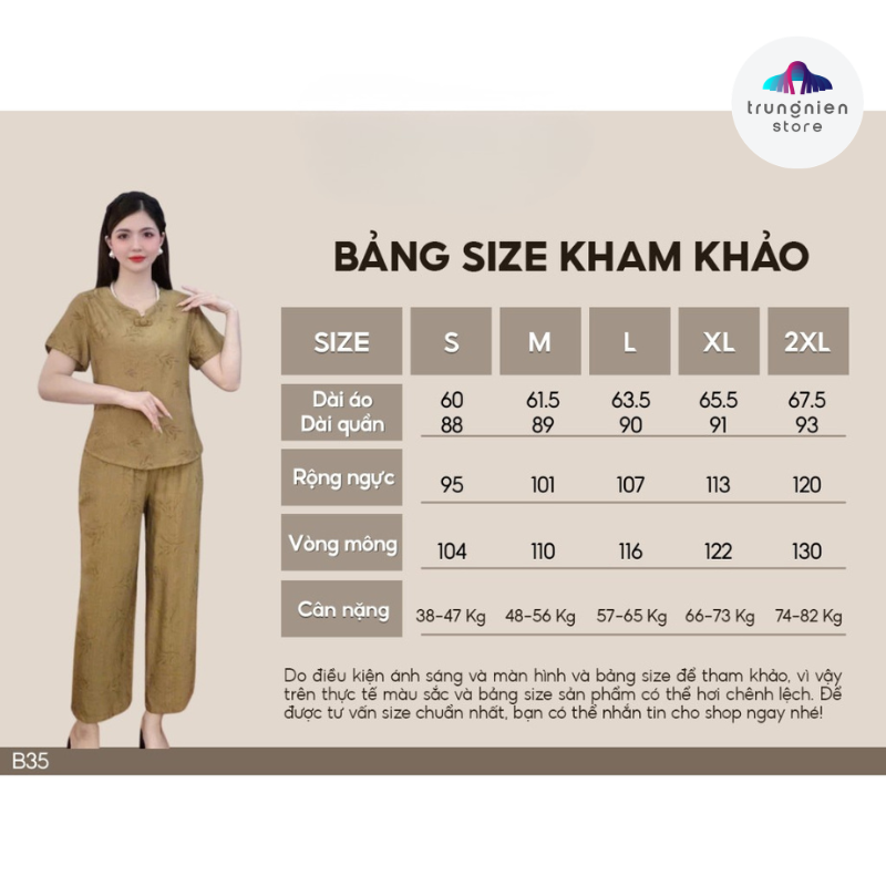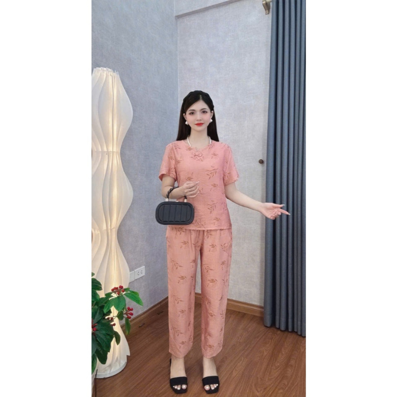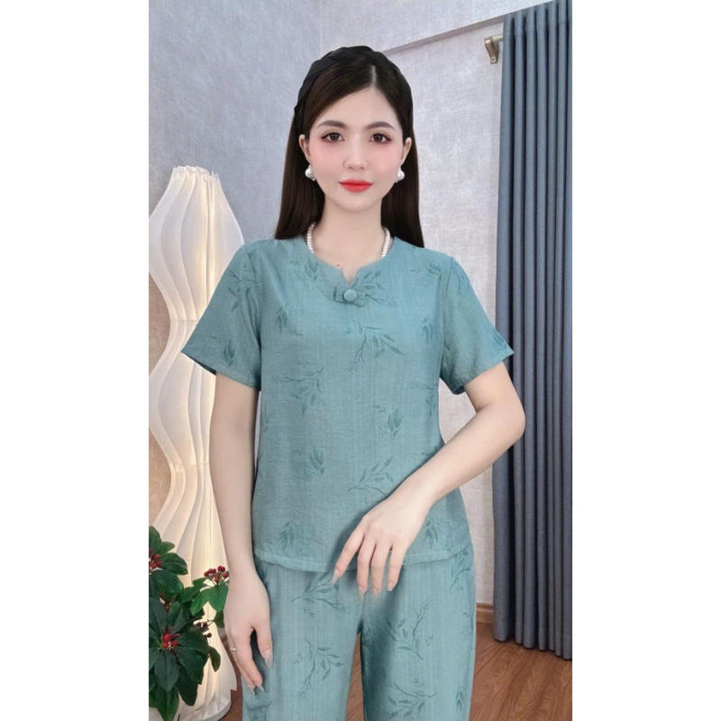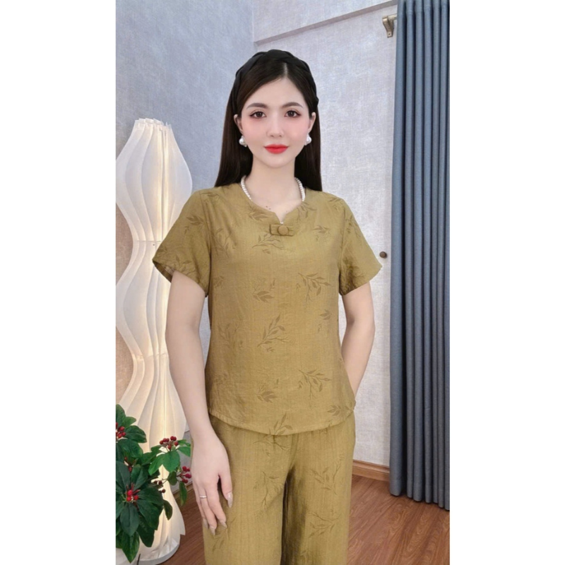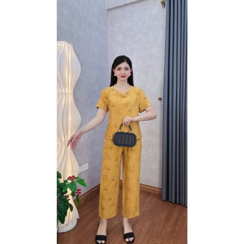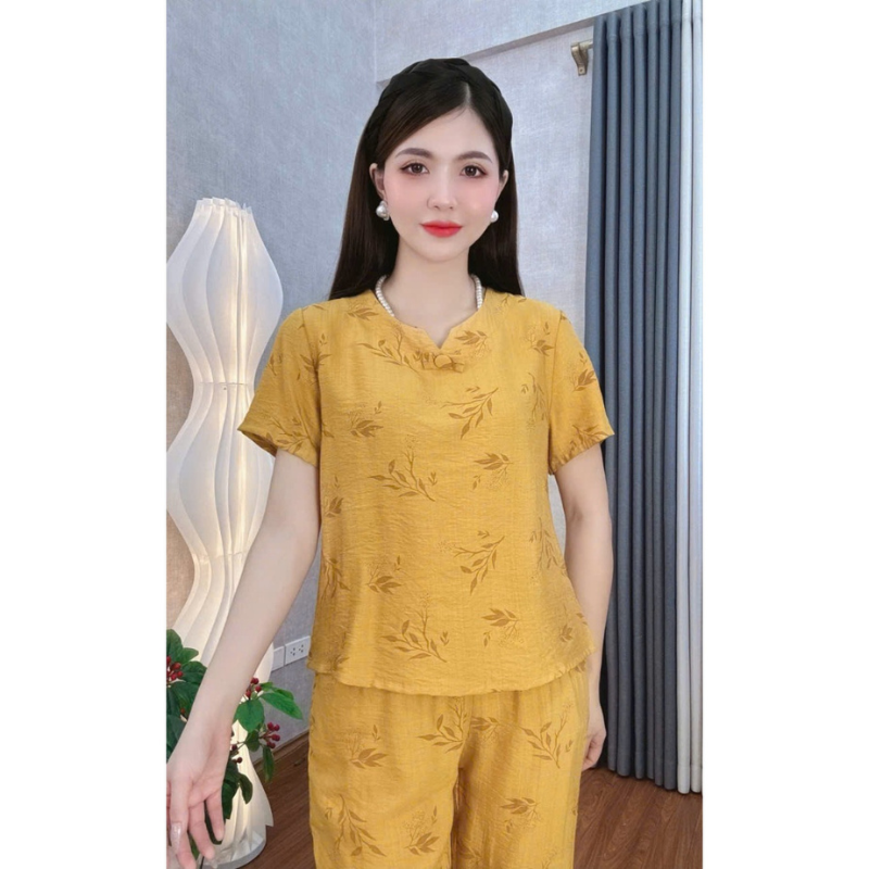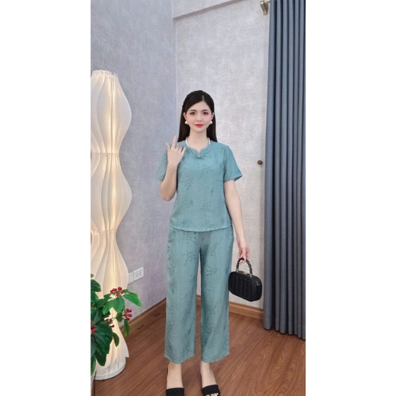 Bộ Đồ Trung Niên Mặc Nhà Cho Mẹ Trung Niên Store Chất Liệu Đũi Tơ Mềm Mại, Co Giãn Nhẹ Cộc Tay Quần Dài B35