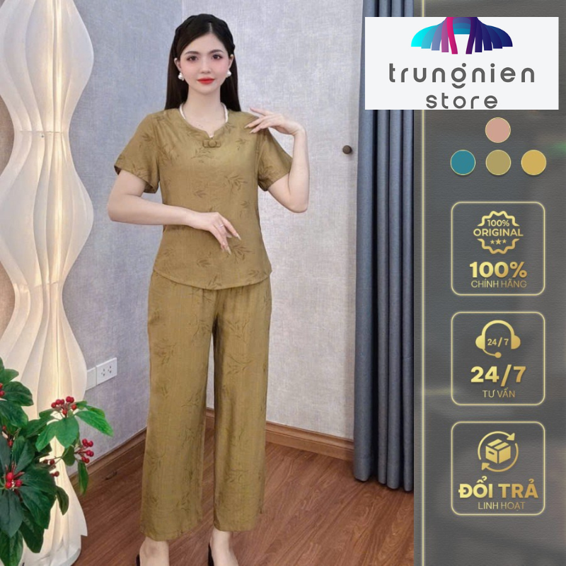 Bộ Đồ Trung Niên Mặc Nhà Cho Mẹ Trung Niên Store Chất Liệu Đũi Tơ Mềm Mại