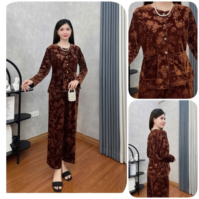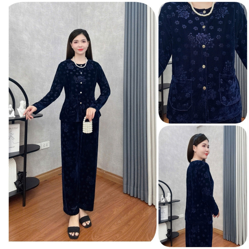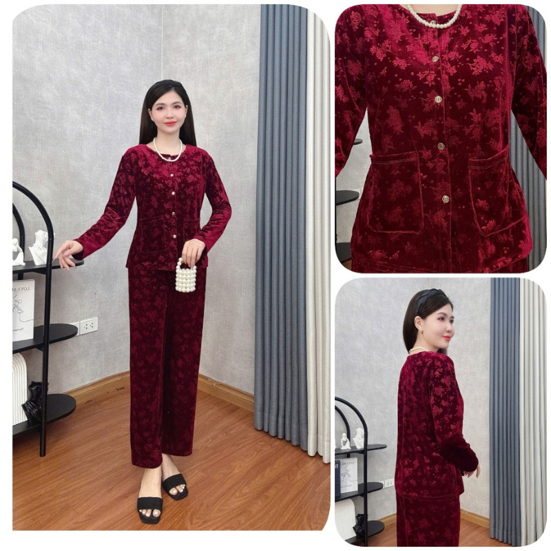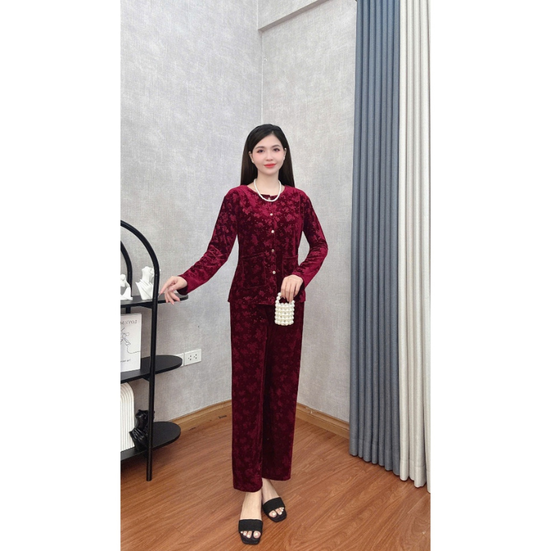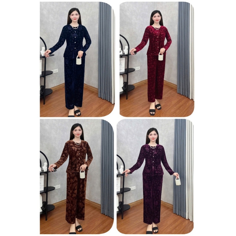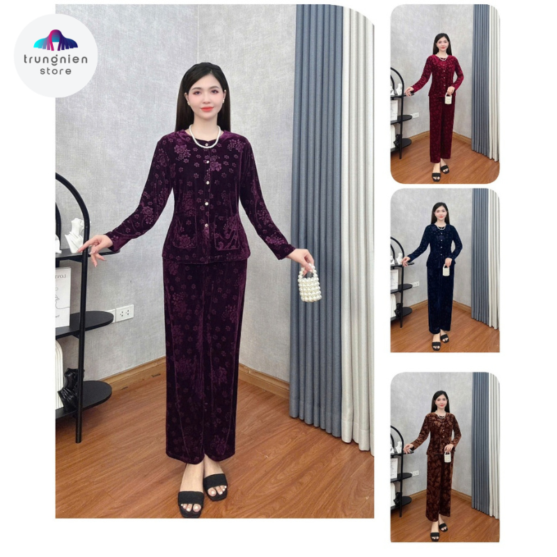 Đồ Bộ Trung Niên Đồ Bộ Mặc Nhà Trung Niên Store Đồ Bộ Cho Mẹ, Bà Chất Liệu Nhung Mềm Mịn Dày Dặn B38