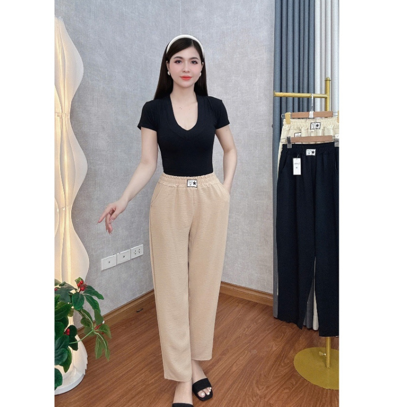 Quần Đũi Dài Trung Niên Nữ Cho Bà Cho Mẹ Dáng Baggy Chất Liệu Đũi Nhăn Cao Cấp Co Giãn Thoải Mái Q10